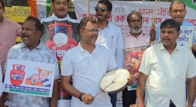 कांग्रेस का हल्ला बोल: रसोई गैस की बढ़ती कीमतों के खिलाफ अनोखा विरोध प्रदर्शन