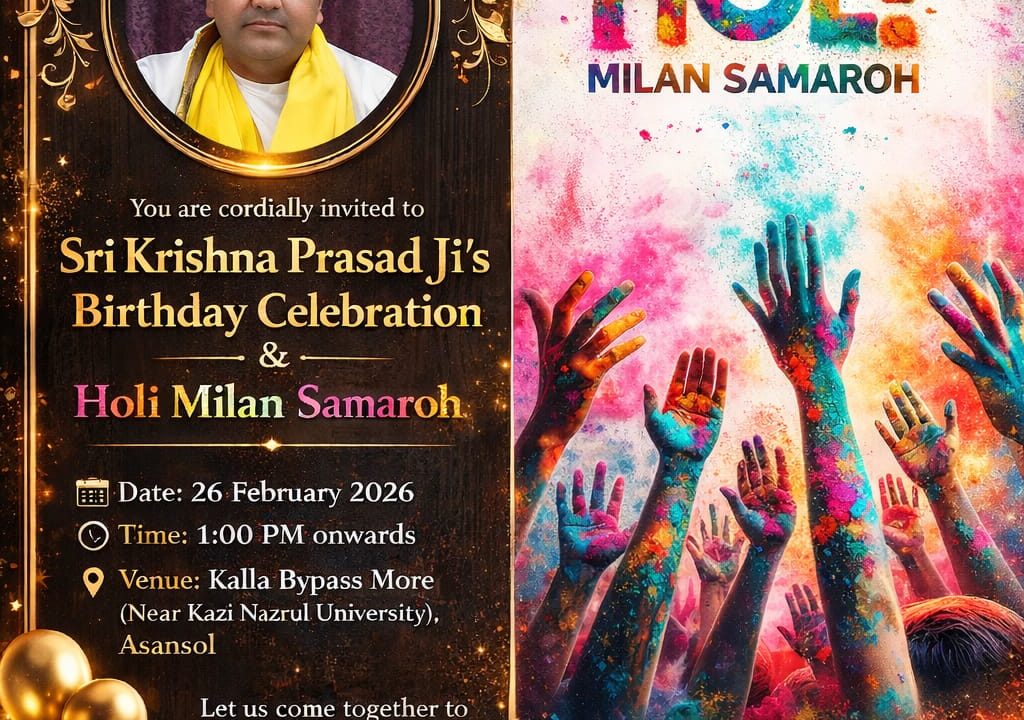होली के रंगों में डूबा कृष्णा प्रसाद जी का जन्मदिन: असमंजस में रंगों की बारिश के साथ मिलन समारोह का भव्य आयोजन