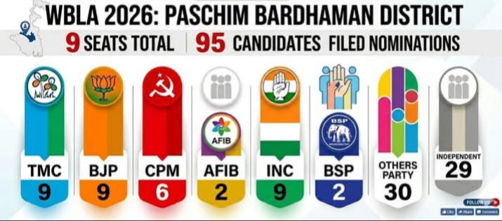 आसनसोल । पश्चिम बर्दवान जिले में 9 विधानसभा सीटों के लिए कुल 95 उम्मीदवारों ने नामांकन दाखिल किए हैं। जिले...