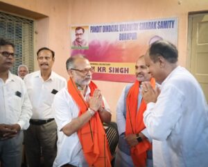 बर्नपुर(भरत पासवान)। भाजपा प्रदेश नेता पवन कुमार सिंह के नेतृत्व में रामबांध स्थित पंडित दीनदयाल उपाध्याय स्मारक समिति कार्यालय में एक भारत श्रेष्ठ भारत के तहत कार्यक्रम का आयोजन किया गया। कार्यक्रम में मुख्य रूप से उपस्थित बिहार भाजपा नेता रवींद्र रंजन एवं भाजपा जिलाध्यक्ष देवतनु भट्टाचार्य को पवन कुमार सिंह ने उत्तरीय पहनाकर सम्मानित किया। इस कार्यक्रम में केंद्र की मोदी सरकार के 11 वर्ष के कार्यकाल की उपलब्धियों पर चर्चा करने के साथ बिहार में आगामी वर्ष होने वाले विधानसभा में प्रवासी बिहारियों को बढ़- चढ़कर मतदान करने की अपील की गई। भाजपा प्रदेश नेता पवन कुमार सिंह ने बताया की प्रधानमंत्री नरेंद्र मोदी के नेतृत्व में भारत श्रेष्ठ बन रहा है और उसमें बिहार तथा झारखंड के लोगों की अहम भूमिका है। बिहार लगातार विकास के पथ पर अग्रसर है। इस बार फिर एनडीए को पूर्ण बहुमत दिलाना है। उन्होने कहा की बिहार की राजनीति का असर पूरे देश पर पड़ता है। इसे ध्यान में रखते हुए देश एवं बिहार के विकास के लिए बिहार से बाहर रहने वाले मतदाताओं को मतदान करने की जरूरत है। वहीं इस अवसर पर भाजपा जिलाध्यक्ष देवतनु भट्टाचार्य, पवन कुमार सिंह, अपु हाज़रा,, अरिजित राय, उपासना उपाध्याय, शंपा राय, पंकज मिश्रा, परिमल पाल, जयराम सिंह, राजेन्द्र शर्मा, अनिल सिंह, चंदन साव, रमन शर्मा, श्रीकांत तिवारी, काजल मंडल, अवधेश सिंह, महेंद्र यादव आदि उपस्थित थे।