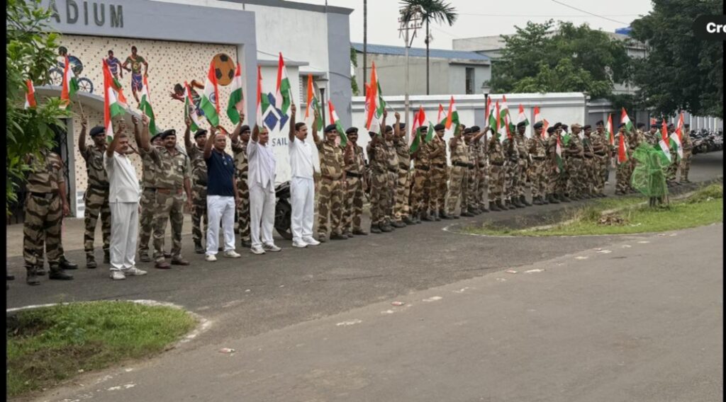 इस दौरान दर्जनों सीआईएसएफ जवानों ने हाथों में तिरंगा लेकर भारत माता की जय का नारा लगाया। साथ ही लोगों को राष्ट्र के प्रति समर्पण भावना को मजबूत करने के साथ आपसी एकता को मजबूत को मजबूत रखने का संदेश दिया। तिरंगा रैली में डिप्टी कमांडेंट वीएस सुरीन, एसिस्टेंट कमांडेंट एके झा, जी एन श्रीवास्तव, एन पी पुरिया, इंस्पेक्टर सुजीत कुमार, मिथिलेश झा सहित दर्जनों सीआईएसएफ जवानों ने हिस्सा लिया।