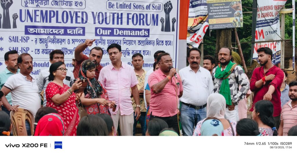 सबेरोजगार यूथ फॉर्म ने स्थानीय युवाओं को आईएसपी में काम देने की मांग पर धरना प्रदर्शन