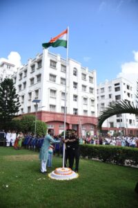 दुर्गापुर । पंडित जवाहरलाल नेहरू ने कहा था, “आधी रात के समय, जब दुनिया सो रही होगी, भारत जीवन और स्वतंत्रता के लिए जागेगा।” इसी भावना के साथ, दिल्ली पब्लिक स्कूल दुर्गापुर ने 79वां स्वतंत्रता दिवस गर्व और देशभक्ति के जोश के साथ मनाया। भारतीय झंडों और जीवंत छात्र कलाकृतियों से सुसज्जित, परिसर इस दिन के लिए पूरी तरह तैयार था। समारोह की शुरुआत दिल्ली पब्लिक स्कूल, दुर्गापुर के सम्मानित प्रधानाचार्य उमेश चंद जायसवाल और विशिष्ट मुख्य अतिथियों, कर्नल (डॉ.) उमा पटनायक और ब्रिगेडियर (डॉ.) एस.के. पटनायक द्वारा राष्ट्रीय ध्वज फहराने के साथ हुई, जिसके बाद हमेशा प्रेरणादायी राष्ट्रगान हुआ। ध्वजारोहण का गौरवपूर्ण क्षण मंत्रमुग्ध कर देने वाला था। दिव्य वातावरण के बीच, भारतीय तिरंगा पूरी तरह से फहराया गया।