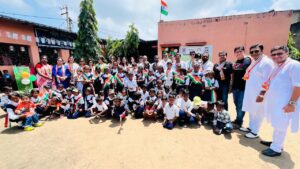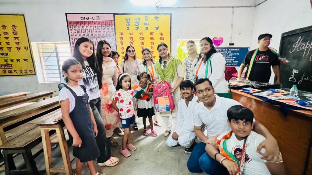 आसनसोल । 15 अगस्त 2025 शुक्रवार रोटरी क्लब ऑफ आसनसोल ग्रीन सिटी ने बड़े उत्साह, जोश और गर्व के साथ आजादी की उनासि वर्षगांठ का जश्न शहीद सिद्धू कानू फ्री प्राइमरी स्कूल में मनाया। कार्यक्रम के शुरूआत रोटेरियन अध्यक्ष रोहित क्याल ने तिरंगा फहराकर किया और उसके बाद सभी ने राष्ट्र गान गाया। शहीद सिद्धू कानू एक फ्री प्राइमरी स्कूल है, जिसमें रोटरी क्लब ऑफ आसनसोल ग्रीन सिटी हर साल स्वतंत्रता दिवस के मौक़े पर खूब धूम धाम से मनाता है। स्कूल के बच्चों ने देशभक्ति से जुड़े कई नृत्यगान प्रस्तुत किये जो काफ़ी मनमोहक थे।