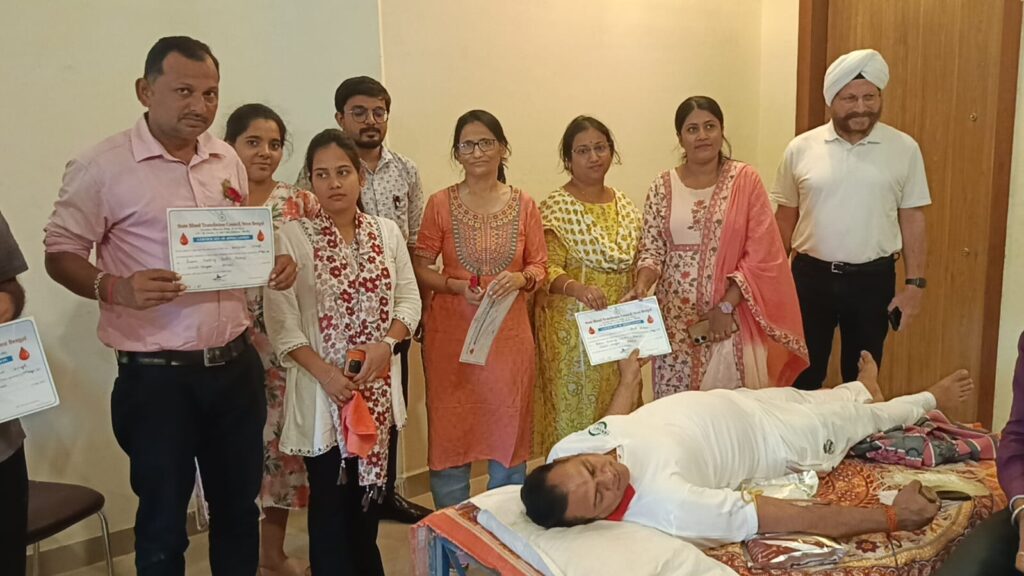 आसनसोल । आसनसोल सृष्टिनगर के ओडिसी क्लब में रविवार को प्राणिक हीलिंग सेंटर की ओर से रक्तदान शिविर आयोजित किया गया, जिसमें 38 यूनिट रक्त संग्रह हुआ। शिविर का आयोजन बंगाल सृष्टि के प्रॉपर्टी मैनेजमेंट हेड बिनय चौधरी के सहयोग से किया गया। उन्होंने भी खुद रक्तदान किया। 50 यूनिट रक्त संग्रह का लक्ष्य था, जिसमें कई महिलाओं सहित 38 लोगों ने रक्तदान किया। इस संदर्भ में पत्रकारों को जानकारी देते हुए प्राणिक हीलिंग सेंटर के संस्थापक और यहां के मुख्य प्रशिक्षक टिंकू कपूर ने बताया कि प्राणिक हीलिंग सेंटर लोगों के मन के विकारों उनकी परेशानियों को दूर करने का प्रयास करता है। प्राणिक हीलिंग सेंटर का यह मानना है कि जब तक किसी इंसान का मन मस्तिष्क स्वस्थ नहीं रहेंगे। तब तक उनका शरीर भी स्वस्थ नहीं रह सकता है। इसीलिए प्राणिक हीलिंग सेंटर बीते लंबे समय से लोगों के मन के विकार दूर करने का प्रयास करता रहा है। आज प्राणी हिलिंग सेंटर द्वारा सृष्टि नगर तथा ऑपरेशंस हेड विनय चौधरी के सहयोग से रक्तदान शिविर लगाया गया। टिंकू कपूर ने कहा कि प्राणिक हीलिंग सेंटर में वह चाहते हैं कि सभी एक दूसरे के प्रति सकारात्मक भाव से जीवन जी सके।