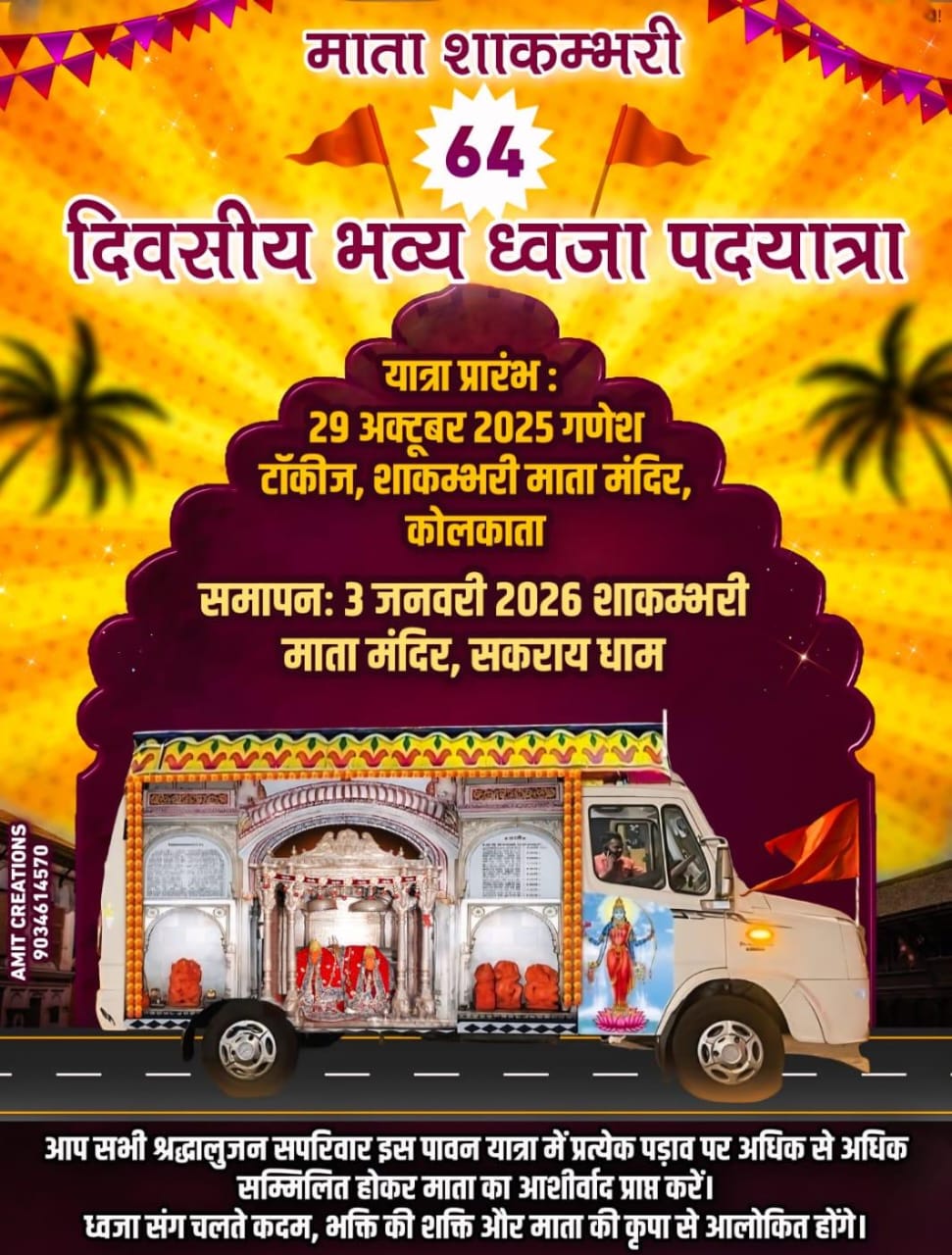 माँ शाकंभरी की 64 दिवसीय भव्य ध्वजा पदयात्रा 5 को पहुंचेगी आसनसोल