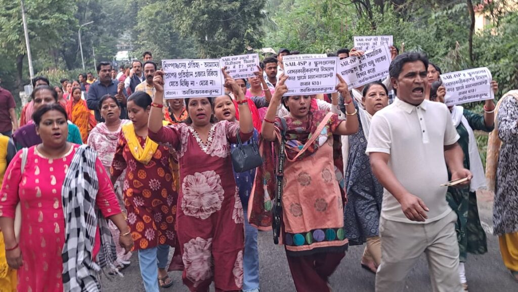 जहां हाथों में तख्ती लिए लोगों ने स्कूलों का निजीकरण किए जाने का विरोध जताया। इसके पश्चात पार्षद अशोक रुद्र के नेतृत्व में पार्षदों के एक प्रतिनिधिमंडल ने आईएसपी के सीजीएम इंचार्ज (एचआर) यूपी सिंह को ज्ञापन सौंपकर स्कूलों को निजी हाथों में सौंपे जाने के निर्णय को वापस लेने की मांग की। साथ ही इस मुद्दे को लेकर कोई पहल नहीं किए जाने पर लगातार आंदोलन करने की भी चेतावनी दी। ज्ञापन सौंपे जाने के पश्चात पार्षद अशोक रुद्र ने बताया कि सेल आईएसपी प्रबंधन द्वारा बर्नपुर बॉयज प्राइमरी, हाई, बर्नपुर गर्ल्स प्राइमरी, हाई स्कूल एवं आईएसपी मॉडल इंग्लिश स्कूल का संचालन किया जाता है। इसके पूर्व कुछ साल पहले छोटादिघारी स्कूल को बंद कर कोविड अस्पताल बना दिया गया है। बर्नपुर बॉयज, गर्ल्स प्राइमरी एवं स्कूल में आईएसपी कर्मियों के साथ काफी संख्या में गरीब परिवारों के बच्चे पढ़ते हैं लेकिन आईएसपी प्रबंधन शिक्षा विरोधी तथा बांग्ला विरोधी काम कर इन स्कूलों का निजीकरण करना चाहती है। जिसे किसी भी हाल में नहीं होने दिया जायेगा। साथ ही उन्होंने निशाना साधते हुए कहा कि आईएसपी आईएसपी के मॉडर्नजेशन के लिए हजारों करोड़ रुपए आवंटित किया गया है जिससे इन सभी स्कूलों को और बेहतर किया जा सकता है। सभी इंफ्रास्ट्रक्चर एवं सुविधा होने के बावजूद सेल प्रबंधन इन स्कूलों को किस कारण निजी हाथों में सौंपना चाहती है। साथ ही आईएसपी का सीएसआर विभाग लाखों रूपये खर्च दूसरे स्कूलों में विकास करने के साथ बच्चों में पाठ्य सामग्री का वितरण करती है जबकि आईएसपी अपने ही स्कूलों को क्यों बंद करना चाहती है। इन स्कूलों का निजीकरण होने के बाद यहां पढ़ने वाले बच्चों से मनमाना फीस वसूला जायेगा। इसका जवाब प्रबंधन दे। सेल आईएसपी प्रबंधन इन स्कूलों के बच्चों के भविष्य से खिलवाड़ करना बंद करे। वहीं इस दौरान उपस्थित बोरो चेयरमैन डॉ देवाशीष सरकार ने प्रदूषण पर आईएसपी एवं ईसीएल की आलोचना करते हुए कहा कि आईएसपी संलग्न पुरुषोत्तमपुर, कोयलापुर सहित कई इलाके की हवा काफी प्रदूषित होने के कारण लोग सिलिकोसिस से पीड़ित होकर मर रहे हैं। यही हाल ईसीएल संलग्न डामरा तथा उसके आस पास के इलाकों का है। दोनों प्रतिष्ठान केवल उत्पादन पर ध्यान नहीं देकर यहां रहने वाले लोगों उनके परिवार के स्वास्थ्य, शिक्षा एवं रोजगार पर भी ध्यान दे। इस मौके पर दो बोरो चेयरमैन शिवानंद बाउरी, डॉ देवाशीष सरकार, पार्षद अशोक रुद्र, सोना गुप्ता कहकशा रियाज, गुरमीत सिंह, राकेश शर्मा, दिलीप ओरांग सहित काफी संख्या में स्थानीय महिला, पुरुष मौजूद थे।