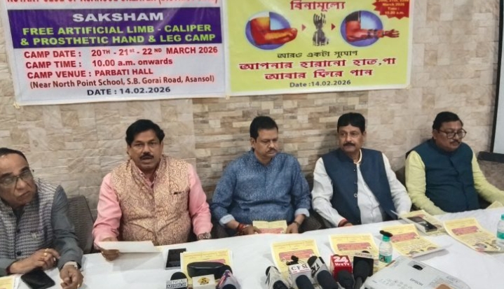 आसनसोल । आसनसोल में रोटरी क्लब ऑफ आसनसोल ग्रेटर की तरफ से शनिवार को एक पत्रकार सम्मेलन का आयोजन किया गया, जिसमें 20, 21 और 22 मार्च को एसबी गोरई रोड के किनारे स्थित पार्वती हाल में फ्री आर्टिफिशियल लिंब कैलीपर और प्रोस्थेटिक हैंड एंड लेग कैंप के आयोजन की जानकारी दी गई।