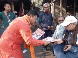 आसनसोल । शिल्पांचल के विशिष्ट समाजसेवी सह भाजपा युवा नेता कृष्णा प्रसाद ने अपने कार्यकर्ताओं के साथ मंगलवार को आसनसोल नगर निगम के वार्ड नंबर 50, 51, 52, 53, के मंडल 3 में बूथ संख्या 67, 68, 69 में एक भव्य जनसंपर्क अभियान का आयोजन किया। इस अभियान की शुरुआत उन्होंने कोर्ट मोड में स्थित श्रीश्री 1008 हनुमान संकट मोचन मंदिर में पूजा अर्चना करने के साथ की।