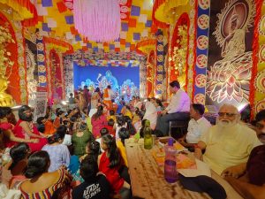 इस पवित्र अवसर पर, भक्तों ने माता दुर्गा से आशीर्वाद प्राप्त किया और उनके चरणों में अपनी श्रद्धा अर्पित की। भक्तों ने माता दुर्गा की जय-जयकार की और उनके आदर्शों को अपनाने का संकल्प लिया। इस भव्य पूजा का आयोजन करके, भक्तों ने अपने जीवन को सार्थक बनाया और माता दुर्गा की कृपा प्राप्त की।
