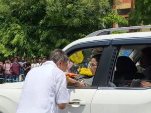दुर्गापुर । दुर्गापुर में विधानसभा चुनाव के लिए नामांकन प्रक्रिया के दौरान एक विशेष दृश्य देखने को मिला। पांडेश्वर विधानसभा क्षेत्र से तृणमूल कांग्रेस (TMC) के प्रत्याशी नरेंद्र नाथ चक्रवर्ती ने अपना नामांकन दाखिल करने से ठीक पहले पश्चिम बंगाल की मुख्यमंत्री ममता बनर्जी का आशीर्वाद प्राप्त किया।