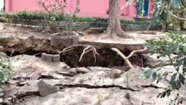 बाराबनी में भू धंसान का कहर: 300 साल पुराने ऐतिहासिक मंदिर के सामने जमीन फटी, ग्रामीणों ने ईसीएल के खिलाफ खोला मोर्चा