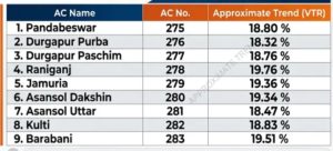 ‘पश्चिम बर्दवान में पहले 2 घंटे में 19% वोटिंग: रानीगंज सबसे आगे 19.76%, दुर्गापुर पूर्व सबसे धीमा 18.32%’