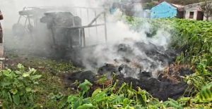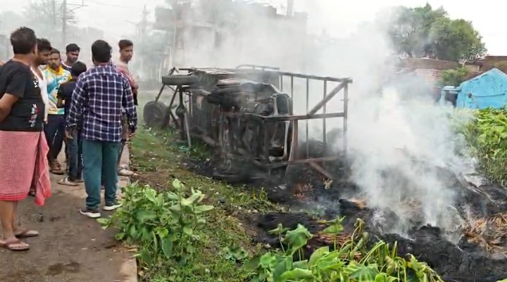 प्रत्यक्षदर्शियों ने बताया कि पिकअप वैन में ऊपर तक बिचाली लदा हुआ था। सड़क के ऊपर से गुजर रहे बिजली के तार से बिचाली के टकराते ही उसमें आग लग गई और देखते ही देखते पूरी गाड़ी लपटों में घिर गई।